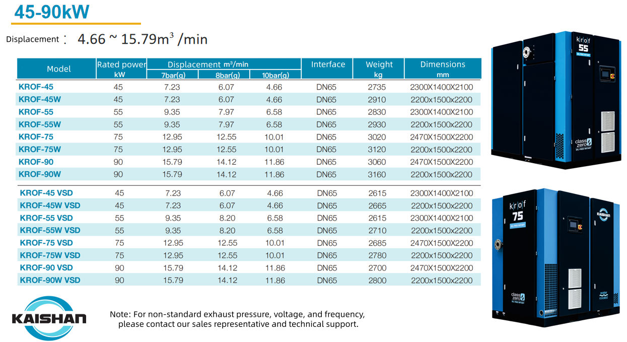 Kaishan Dry-Type 100% Oil-Free Rotary Screw Air Compressor Class 0 Certified