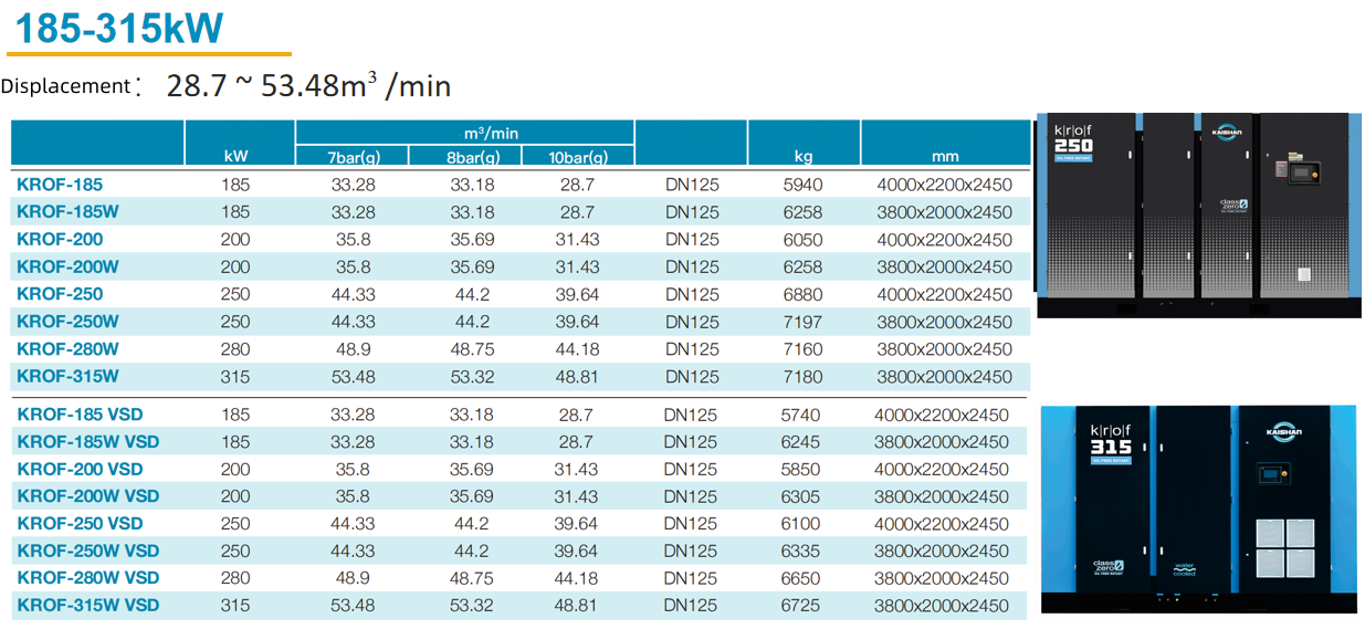 | Uses two-stage compression. | With a lower pressure ratio, it is more efficient than a single-stage air compressor,achieving the same pressure with less electricity. |